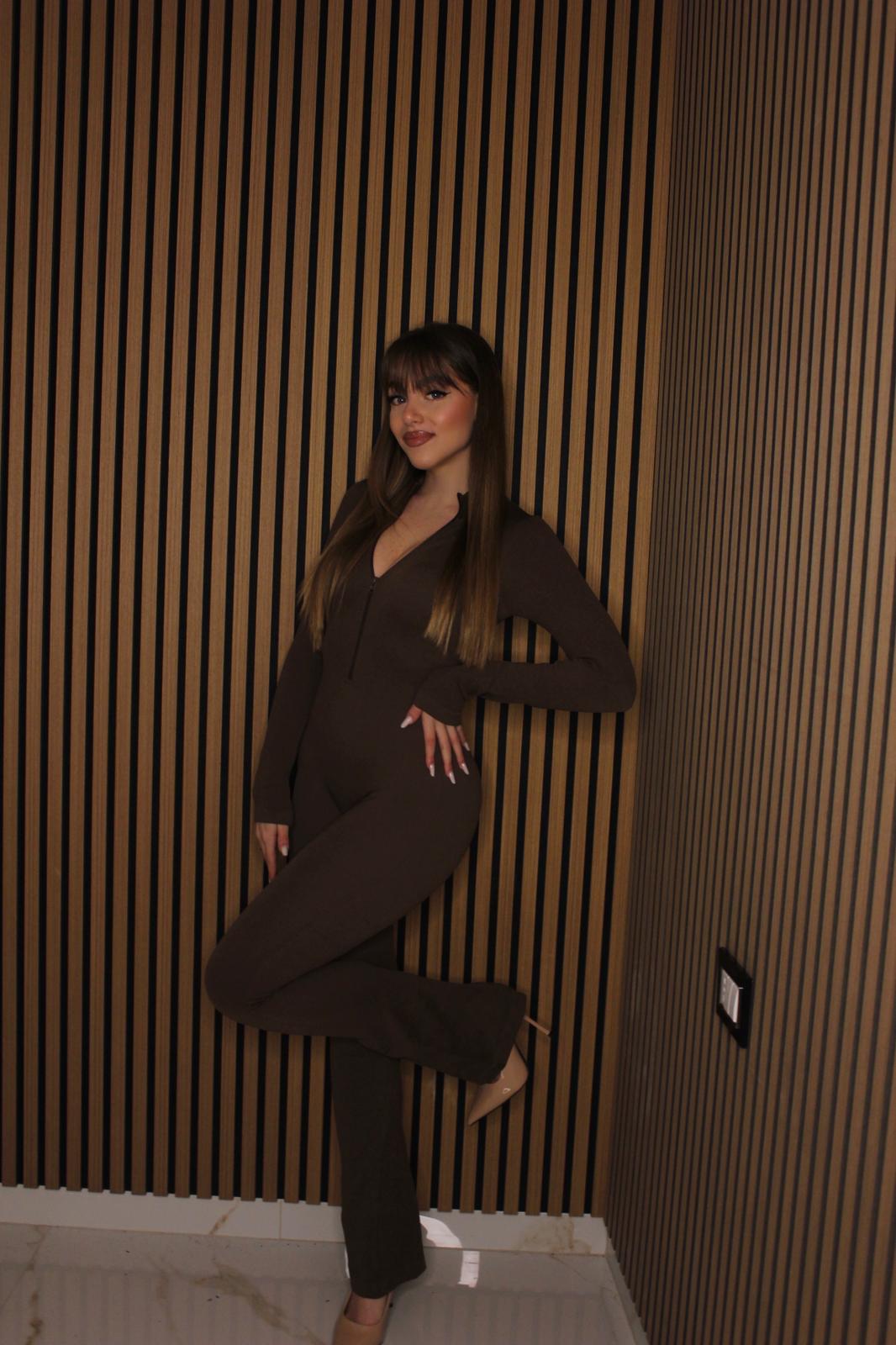 Jump Scarlett 2.0 è una tuta versatile in marrone che si adatta perfettamente da una XS a una L. Realizzata con attenzione ai dettagli, questa versione si distingue per il pantalone a zampa che regala un tocco di eleganza retrò e movimento. Ideale per chi cerca un capo polivalente che combina comfort e stile, la tuta offre una silhouette moderna con un twist classico. Perfetta per occasioni casual o più sofisticate, grazie alla sua tonalità neutra e al fit inclusivo.