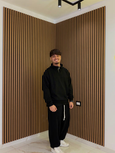 La Tuta Chicago Nera è realizzata in una combinazione di cotone e poliestere morbido, garantendo comfort e traspirabilità. I pantaloni con elastico assicurano una vestibilità sicura e flessibile, ideale per attività sportive o momenti di relax. Questo capo è una scelta pratica per un abbigliamento quotidiano.