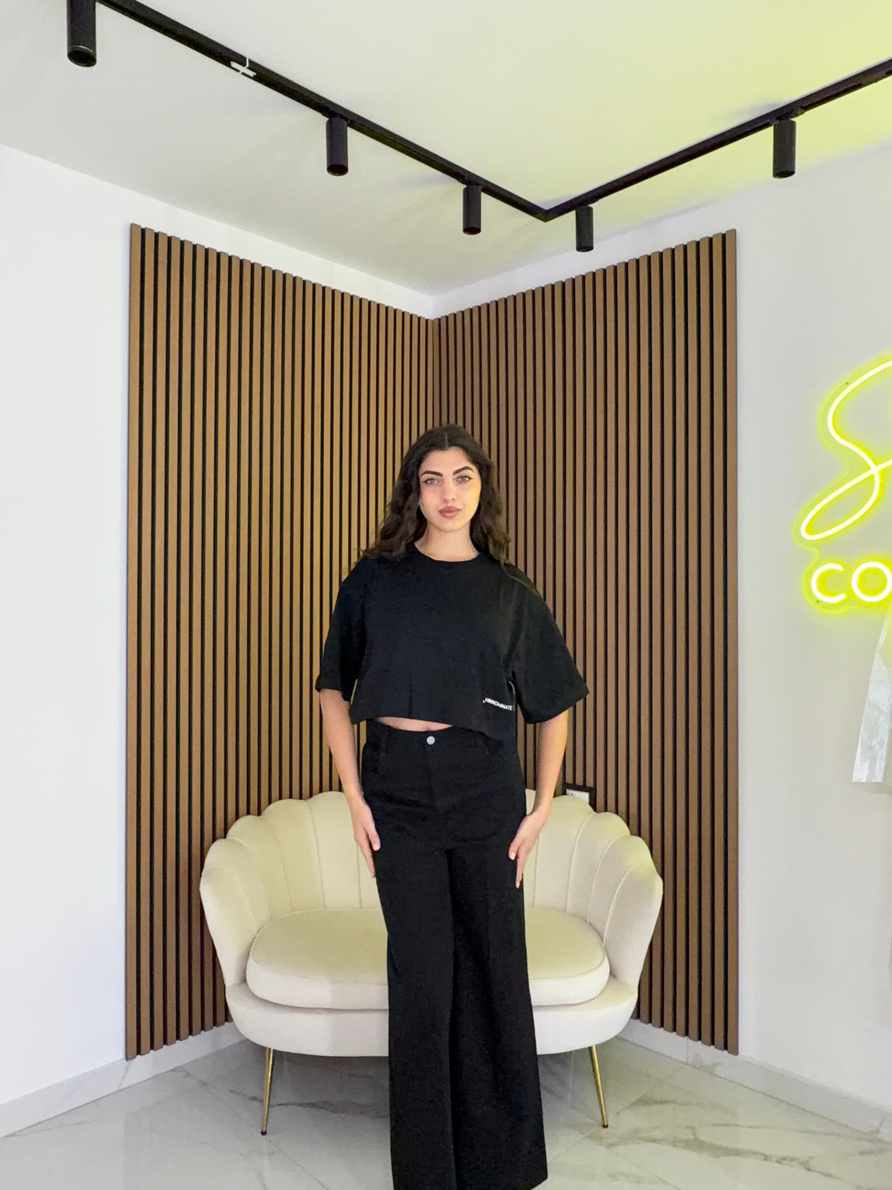 La T-shirt nera Hinnominate è realizzata al 100% in cotone, garantendo traspirabilità e comfort. La sua particolare vestibilità crop offre una silhouette moderna, ideale per combinazioni casual e alla moda. Questo prodotto rappresenta una scelta sostenibile e versatile per il guardaroba contemporaneo.